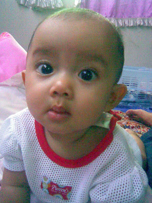 keS ini jadi sebab rambut sayang ,( Dulu masa pantang dah buat dah cukur Jambul) tapi x nak naik sekata...sana panjang sini x ada rambut ...Lepas tu suka tarik Rambut yang berdengkol-dengkol ala jenis kusut gitu ..."kata orang tua-tua , x baik baby tarik rambut" so mama tekad & azamnya mama nak BOTAK kan kepala sayang buat ala style rambut Mawi gitu...tapi sebelum tu mama tanya pendapat umie, kot-kot ka umie x setuju diakan MAK kepada Qashrina jugak, Umie kata takpa... so kat kedai yang selalu cousin sayang( dalam umur 10 bulan gitu) ,selalu p potong rambut ,la tempat dia Lagipun Masa raya haji ari tu, bonda lela cakap p buat rambut stle mawi..."nanti naik lebat rambut sebab dulu adik hisyam pun maksu buat macam tu...xpa nie kecik lagi."Semasa sayang dalam kedai, baik je....abah yang pegang sebab mama x beranilah.... Esoknya Isnin, abah p hantar umah Umie sebab merengek sangat( al-maklumlah cuti sekolah, so abang si SAJ pun x p sekolah) nak main la tu..So apa lagi, abah pulak cakp...suruh bang Syed cukur...macam abang( budak lelaki tu la) nama dia Syed Mohd Faris bin Syed Mustafa. Esoknya hari Selasa Lik dah cukur rambut sayang...nak buat macam mana dah jadi....So apa lagi tamatlah rambut sayang yang x sekata tu...